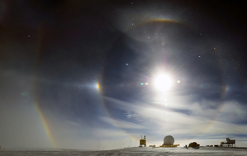 Although the North may be best known for the aurora borealis, there is another phenomenon of comparable beauty, the sundog. Sundogs appear as either rainbow halos around the sun, or multicolored smudges of light in the sky. Our daughter named the camp after she had the chance to witness numerous sundogs during her stay in Fairbanks, Alaska. There they can be seen during the arctic dawn and sunset.